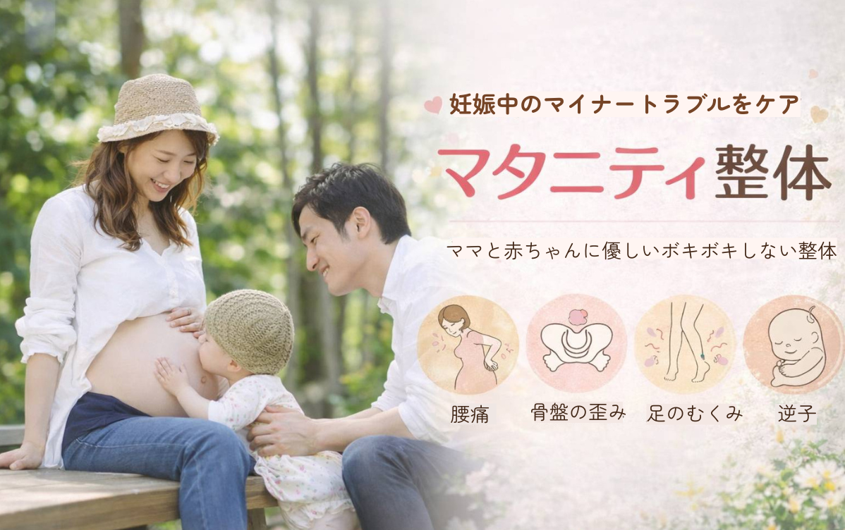 マタニテイ整体は、快適な妊娠生活とスムーズな産後スタートを目的としています。お腹の中の環境を整え、赤ちゃんの居心地の良い空間で発育を促します。