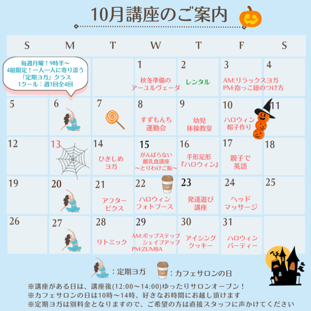 サロンでは毎月ママもこどももワクワクするような、親子の笑顔が溢れるような楽しい講座やワークショップを開催していきます!